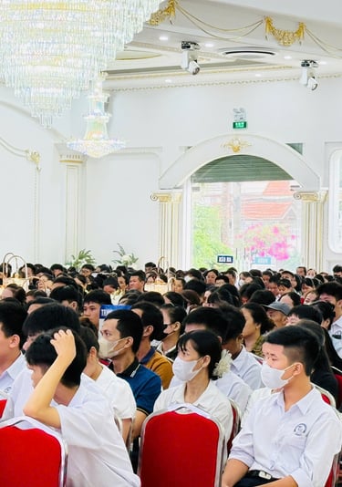 Hội thảo “Kỹ năng quản lý thời gian học tập hiệu quả – Vai trò của cha mẹ trong việc đồng hành cùng con trên hành trình Lập chí – Lập thân – Lập nghiệp”, do Trung tâm Ngoại ngữ BEE phối hợp cùng Trường THPT Quốc Tuấn tổ chức vào ngày 24/08/2025, đã diễn ra thành công với sự tham gia của đông đảo học sinh khối 10, 11, 12 và phụ huynh.